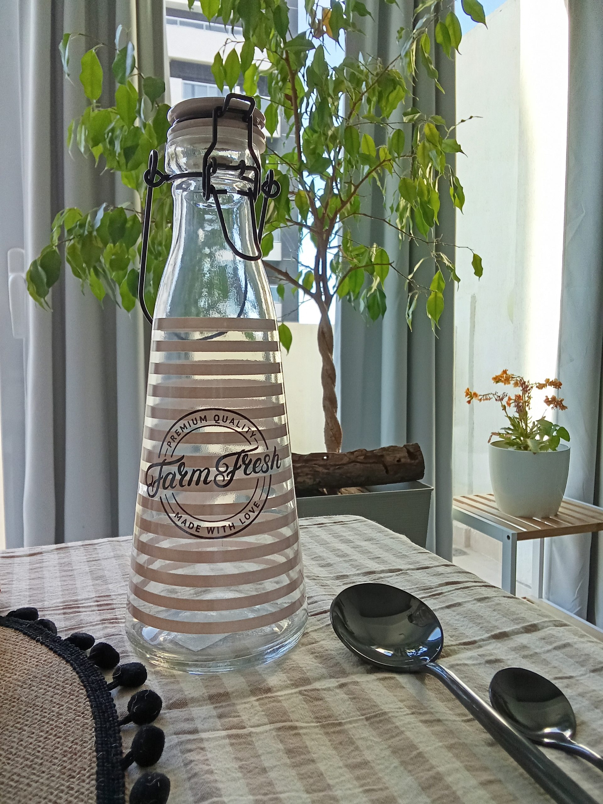 BOTELLA DE VIDRIO TAPA DE CERAMICA VISON Y GANCHO FARM FRESH 550 ML