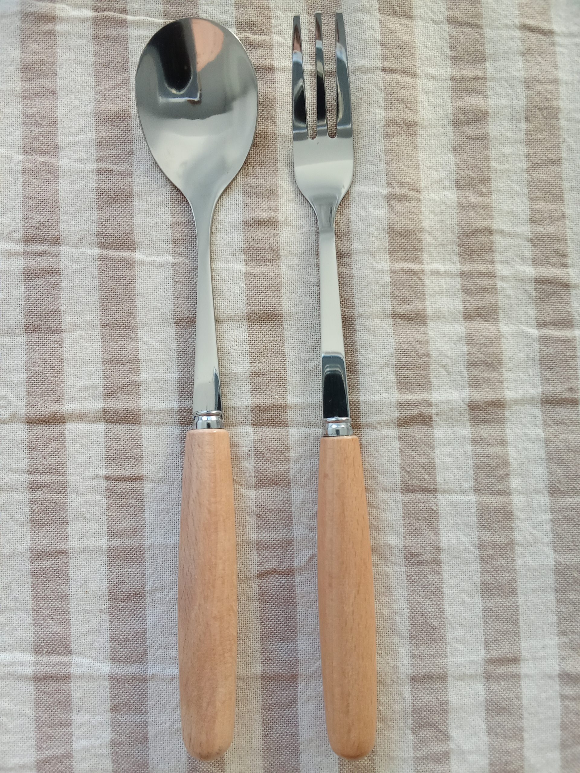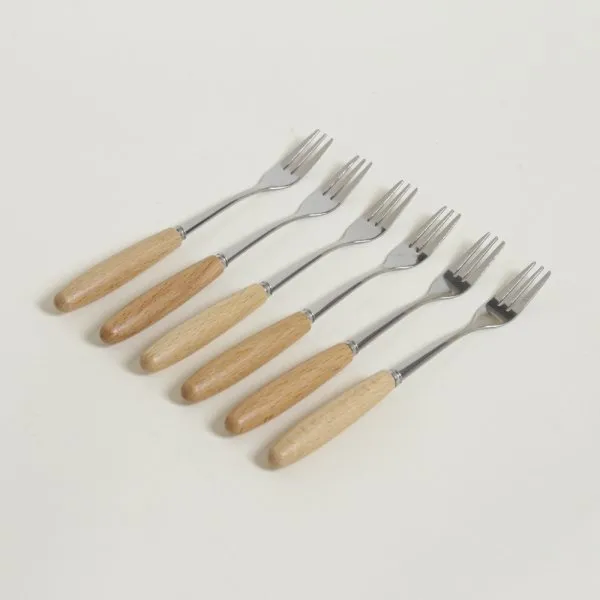 SET X 6 TENEDORES DE ACERO MANGO DE MADERA 17CM